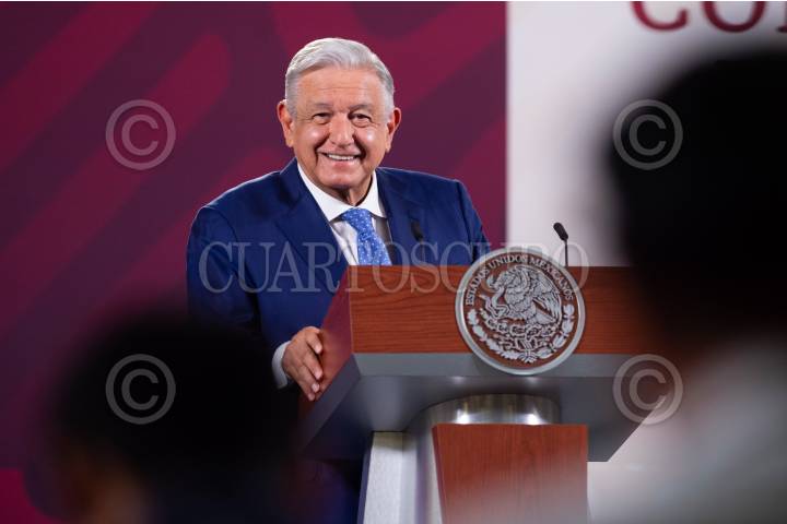 CIUDAD DE MÉXICO, 28ABRIL2023.- Andrés Manuel López Obrador, Presidente de México, reapareció en su tradicional mañanera tras estar ausente una semana por un cuadro de Covid-19, lo acompaño Jorge Mendoza Sánchez, director general del Banco Nacional de Obras y Servicios Públicos (Banobras). FOTO: PRESIDENCIA/CUARTOSCURO.COM