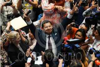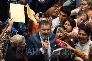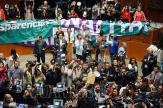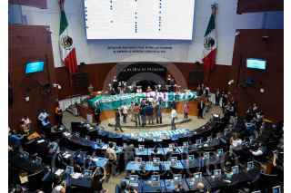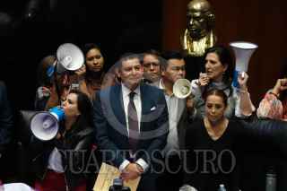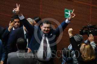 CIUDAD DE MÉXICO, 28ABRIL2023.- Alejandro Armenta Mier, presidente de la Mesa Directiva del Senado, reanudó y mandó a receso la sesión ordinario tras la suspensión del día de ayer por la toma de la tribuna por parte de senadoras y senadores del bloque de oposición. Armenta Mier señaló que será una sede alterna dónde se lleven los trabajos, tras conseguir la asistencia de 65 senadores. FOTO: GALO CAÑAS/CUARTOSCURO.COM