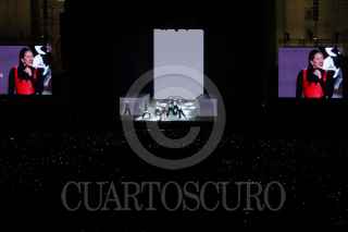 CIUDAD DE MÉXICO, 28ABRIL2023.- La cantante española Rosalía durante su presentación en el Zócalo capitalino. FOTO: GALO CAÑAS/CUARTOSCURO.COM