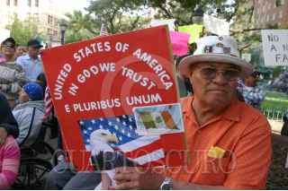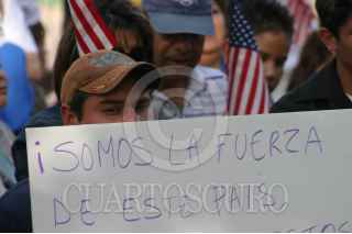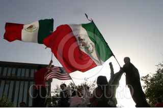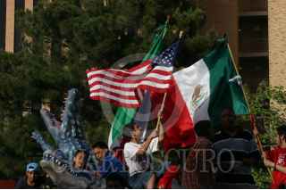 EL PASO, TEXAS 10ABRIL 2007.- Cientos de estudiantes, trabajadores agricolas, asi como una serie de ONG's que defienden los derechos de los migrantes hispanos, marcharon por las calles de esta ciudad fronteriza en protesta por las constantes redadas y deportaciones de que son objetos grupos de migrantes hispanos en este pais. En el evento que se llevo a cabo en la plaza de san Jacinto,los manifestantes portaron banderas mexicanas y de los Estados Unidos. FOTO: JOSÉ JOAQUIN MURRIETA/CUARTOSCURO.COM