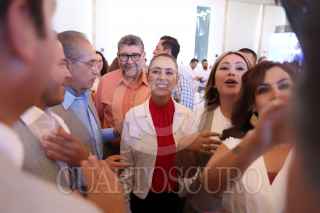LEÓN, GUANAJUATO, 29ABRIL2023.- Claudia Sheinbaum, jefa de gobierno de la Ciudad de México, encabezó una reunión con empresarios de Guanajuato como parte de su gira de trabajo por el estado. Entre los invitados destacaron: Héctor Tejada Shaar, presidente de Concanaco Servytur; Helen Anaya Sanromán, expresidenta de Canirac Guanajuato y Juan Pablo Rocha Moreno, expresidente de la Asociación de Hoteles y Moteles de León. FOTO: GOBIERNO CDMX/CUARTOSCURO.COM