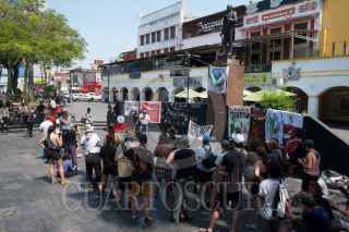 VILLAHERMOSA, TABASCO, 29ABRIL2023.- Continua el avance de la Caravana Sur Resiste 2023 por la región, dónde realizaron un mitin político cultural en la Plaza Pública Benito Juárez, al centro de la ciudad. Las organizaciones civiles expresaron y compartieron las luchas en contra de los megaproyecto e injusticias que viven en sus comunidades por parte de las autoridades. FOTO: ISABEL MATEOS /CUARTOSCURO.COM