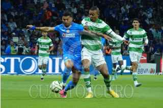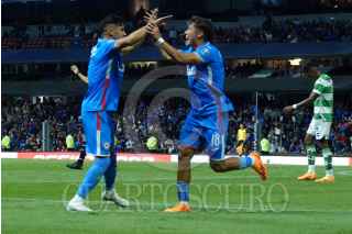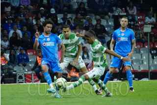 CIUDAD DE MÉXICO, 29ABRIL2023.- El Cruz Azul ganó 3-2 contra Santos durante el partido Jornada 17 de la Liga MX Clausura 2023, en el Estadio Azteca. FOTO: GRACIELA LÓPEZ /CUARTOSCURO.COM