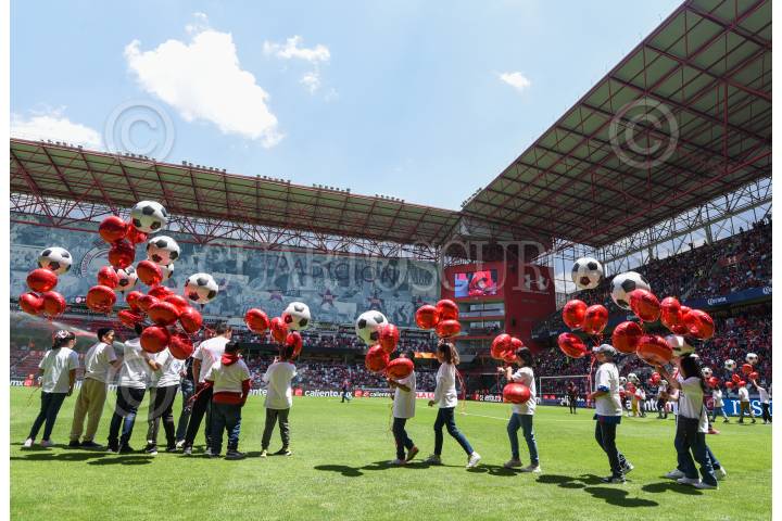 TOLUCA, ESTADO DE MÉXICO, 30ABRIL2023.- Los niños que acudieron al estadio Nemesio Diez al encuentro entre los Diablos de Toluca y Rayos del Necaxa. FOTO: CRISANTA ESPINOSA AGUILAR /CUARTOSCURO.COM