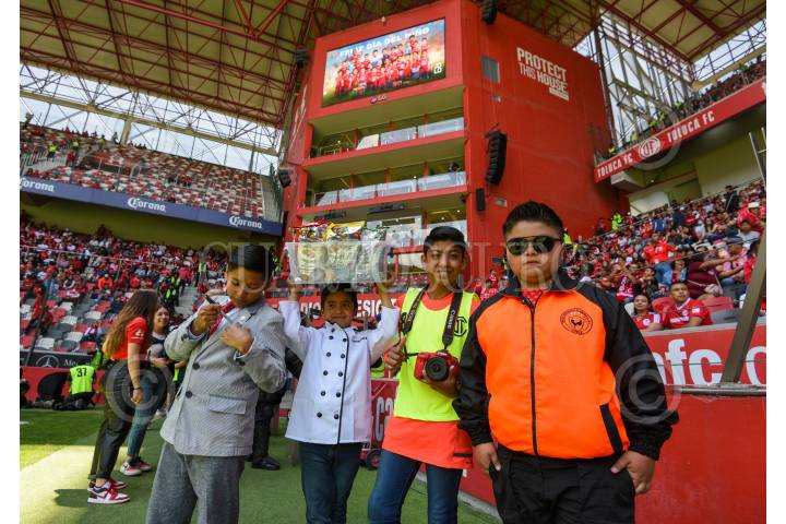 TOLUCA, ESTADO DE MÉXICO, 30ABRIL2023.- Los niños que acudieron al estadio Nemesio Diez al encuentro entre los Diablos de Toluca y Rayos del Necaxa. FOTO: CRISANTA ESPINOSA AGUILAR /CUARTOSCURO.COM