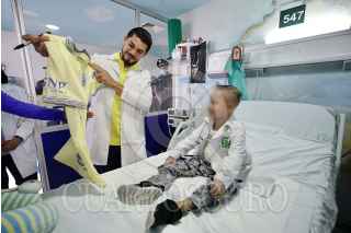CIUDAD DE MÉXICO, 30ABRIL2023.- A cinco años de su inauguración, la Unidad de Acompañamiento y Cuidados Paliativos del Hospital de Pediatría Dr. Silvestre Frenk Freund, del Instituto Mexicano del Seguro Social (IMSS), es única en su tipo en toda la institución y ofrece a los pacientes que cursan una enfermedad amenazante o limitante, hospitalización para el control de síntomas o asistencia ante un inminente final de la vida. La doctora Alejandra Nava Martínez, pediatra titular de la Unidad de Cuidados Paliativos, señaló que la clínica ha atendido a 445 pacientes de patología oncológica y no oncológica, a quienes por su condición se les permite recibir la visita de sus familiares, amigos y estar acompañados las 24 horas. La visita del futbolista Henry Martin se logró gracias a la coordinación de las autoridades del hospital pediátrico, ubicado en el Centro Médico Nacional (CMN) Siglo XXI del IMSS, la Fundación Dr. Sonrisas y el Club América. FOTO: IMSS/CUARTOSCURO.COM