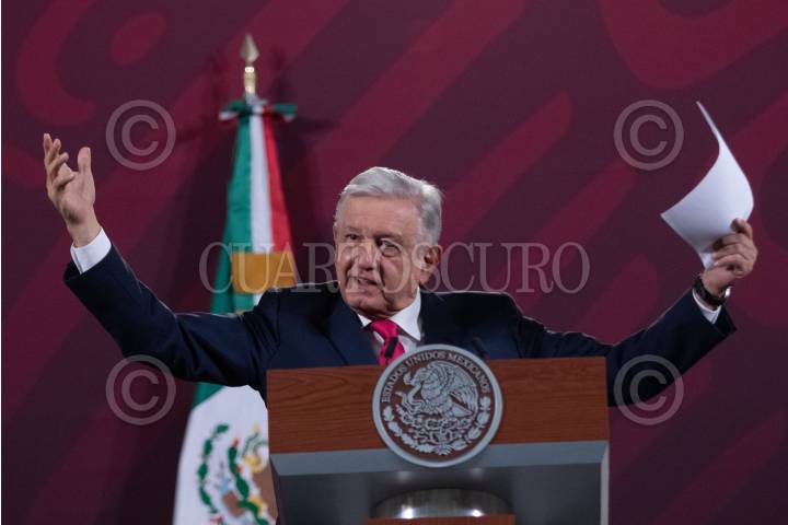 CIUDAD DE MÉXICO, 01MAYO2023.- Andrés Manuel López Obrador, Presidente de México, ofreció su tradicional mañanera en Palacio Nacional, en la cual hablo del Tren Maya, AIFA, Tarjeta Financiera de Bienestar. Lo acompañaron Mauricio Vila Dosal, Gobernador del estado de Yucatán; Ariadna Montiel Reyes, secretaria de Bienestar; Javier May Rodríguez, director general del Fondo Nacional de Fomento al Turismo (Fonatur); Diego Prieto Hernández, director general del Instituto Nacional de Antropología e Historia (INAH); Ricardo Sheffield Padilla, titular de la Procuraduría Federal del Consumidor (Profeco); María del Rocío Mejía Flores, directora general de Financiera para el Bienestar; Manuel Muñoz Cano, director general de Azvindi Ferroviario, y Blas Andrés Núñez Jordán, jefe del Centro Coordinador de Operaciones del Tren Maya. FOTO: MOISÉS PABLO/CUARTOSCURO.COM