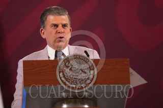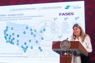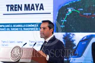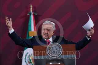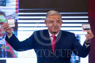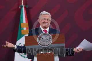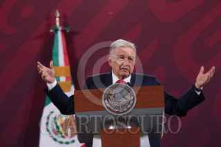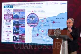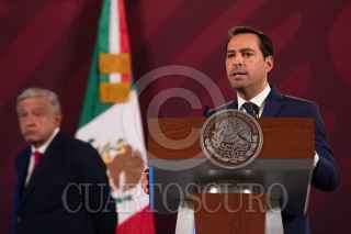 CIUDAD DE MÉXICO, 01MAYO2023.- Andrés Manuel López Obrador, Presidente de México, ofreció su tradicional mañanera en Palacio Nacional, en la cual hablo del Tren Maya, AIFA, Tarjeta Financiera de Bienestar. Lo acompañaron Mauricio Vila Dosal, Gobernador del estado de Yucatán; Ariadna Montiel Reyes, secretaria de Bienestar; Javier May Rodríguez, director general del Fondo Nacional de Fomento al Turismo (Fonatur); Diego Prieto Hernández, director general del Instituto Nacional de Antropología e Historia (INAH); Ricardo Sheffield Padilla, titular de la Procuraduría Federal del Consumidor (Profeco); María del Rocío Mejía Flores, directora general de Financiera para el Bienestar; Manuel Muñoz Cano, director general de Azvindi Ferroviario, y Blas Andrés Núñez Jordán, jefe del Centro Coordinador de Operaciones del Tren Maya. FOTO: MOISÉS PABLO/CUARTOSCURO.COM