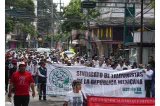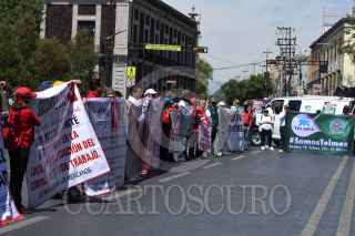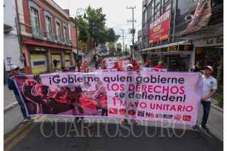 TOLUCA, ESTADO DE MÉXICO, 01MAYO2023.- Trabajadores del Sindicato de Telefonistas de la República Mexicana, del Nacional Monte de Piedad, No al Tarifazo Edoméx, Asamblea Universitaria UAEMEX, Unión General de Trabajadores de México, Asamblea de Trabajadores contra la Precarización laboral #TenemosQueHablar marcharon por las calles de Toluca en el marco del Día del Trabajo que se conmemora este 1 de Mayo exigiendo mejoras laborales, condiciones dignas para trabajar, reconocimiento sindical, aumentos salariales entre otros. FOTO: CRISANTA ESPINOSA AGUILAR /CUARTOSCURO.COM