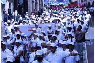 CUERNAVACA, MORELOS, 01MAYO2023.- Cientos de trabajadores agrupados en sindicatos y organizaciones marcharon por las principales calles de la capital para conmemorar el Dia del Trabajo. Las movilizaciones iniciaron desde temprano con la exigencia de incremento salarial y mejora en las condiciones de trabajo. FOTO: MARGARITO PÉREZ RETANA / CUARTOSCURO.COM