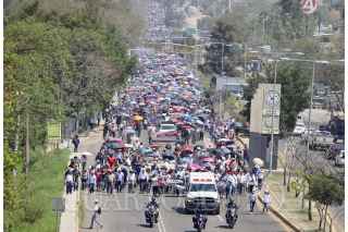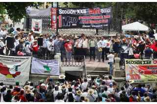 OAXACA, OAXACA, 01MAYO2023.- Más de 15 mil integrantes de la Sección 22 del Sindicato Nacional de Trabajadores de la Educación (SNTE) marcharon este día en conmemoración del Día del trabajo y para hacer entrega de su pliego de peticiones 2023. En el palacio de gobierno de Oaxaca, luego de su marcha la comisión política que encabeza la dirigente Yenny Pérez, entregó al gobernador del estado, Salomón Jara, su pliego de demandas que incluye peticiones laborales, administrativas y de justicia social. Los docentes dieron como plazo de respuesta el 5 de mayo próximo. FOTO: CAROLINA JIMÉNEZ/CUARTOSCURO.COM