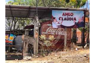 CHILAPA, GUERRERO, 01MAYO2023.- Mantas de apoyo a Claudia Sheinbaum, Jefa de Gobierno, en sus aspiraciones presidenciales. En est zona de Guerrero se observa esta propaganda en la cual también esta la imagen del Presidente, Andrés Manuel López Obrador. FOTO: GRACIELA LÓPEZ/CUARTOSCURO.COM