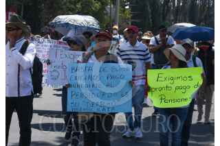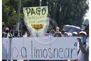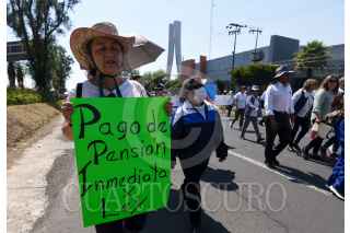 TOLUCA, ESTADO DE MÉXICO, 02MAYO2023.- Jubilados y pensionados del ISSEMYM marcharon por las calles de Toluca exigiendo el pago de sus pensiones, algunos tienen más de año y medio sin poder cobrar, cansados de las promesas decidieron tomar las calles hasta que les resuelvan este problema. FOTO: CRISANTA ESPINOSA AGUILAR /CUARTOSCURO.COM