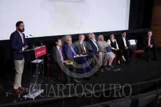 CIUDAD DE MÉXICO, 02MAYO2023.- Christopher Ballinas Valdés, director general de Derechos Humanos y Democracia de la Secretaría de Relaciones Exteriore; Peter Grohmann, coordinador presidente del Sistema de las Naciones Unidas en México; Gautier Mignot, embajador y jefe de la Delegación de la Unión Europea en México; Alejandro Encinas, subsecretario de Derechos Humanos de la Secretaria de Gobernación; Irinea Buendía Cortés, madre de Mariana Lima Buendía y defensora de derechos humanos, mujeres y niñas; Susana Carreño, periodista y defensora de derechos humanos; Enrique Irazoque Palazuelos, coordinador ejecutivo Nacional para la Protección de Personas Defensoras de Derechos Humanos y Periodistas, y Jesús Peña Palacios, representante Adjunto del Alto Comisionado de las Naciones Unidas para los Derechos Humanos en México, encabezaron la presentación de la campaña nacional “De Frente a la Libertad”, iniciativa conjunto entre la ONU-Unión Europea y el gobierno mexicano para dar difusión, concientizar y garantizar el ejercicio de su labor a periodistas y defensores de derechos humanos. El anunció se realizó en las inmediaciones de la Cineteca Nacional. FOTO: GALO CAÑAS/CUARTOSCURO.COM