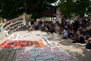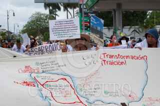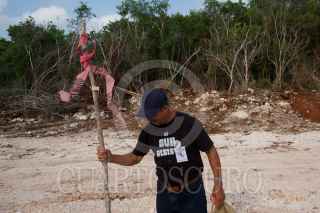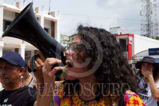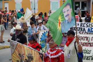 FELIPE CARRILLO PUERTO, QUINTANA ROO, 02MAYO2023.- Para iniciar el octavo día de la Caravana del Sur Resiste 2023, un anciano maya ofreció una ceremonia para agradecer a la tierra y también el camino de la caravana, al finalizar el ritual los integrantes de la caravana en conjunto con sociedad civil marcharon por las calles de la Ciudad gritando consignas en contra de proyectos que dañan la tierra y el bienestar comunal, en un mitin político de legados del CNI tomaron la palabra y enunciaron las problemáticas que viven en sus comunidades a causa de la imposición de megaproyectos extractivistas. Al final de día, se visitó uno de los tramos en construcción del tren maya. FOTO: ISABEL MATEOS /CUARTOSCURO.COM