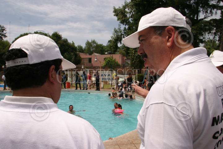 MÉXICO, D.F., 11ABRIL2007.- Héctor Guijosa Mora, delegado de la Magdalena Contreras y Jose Angel Avia Pérez, Secretario de Gobierno, inauguraron la playa artificial Deportivo Casa Popular, en la delegaciópn Magdalena Contreras. En la imagen los funcionarios pasaron al comedor en la cual les mostraron las truchas de la presa que ahí se comercializan, FOTO: MOISÉS PABLO/CUARTOSCURO.COM