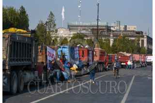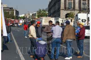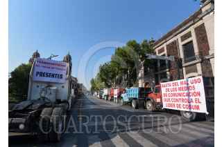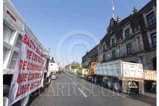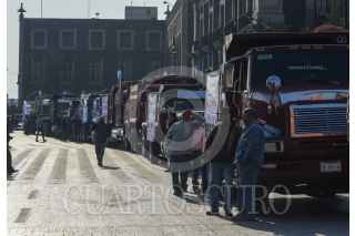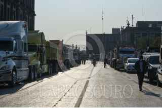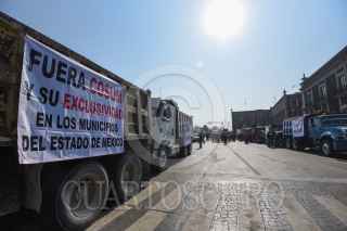 TOLUCA, ESTADO DE MÉXICO, 03MAYO2023.- Integrantes de 6 sindicatos de transportistas se manifestaron en el primer cuadro de la capital mexiquense con alrededor de 120 camiones de carga, exigen trabajo equitativo, tarifas justas y ser escuchados por el gobierno estatal, ya que el sindicato COSUM tiene acaparado todo el trabajo lo cual afecta a todos los demás transportistas que no pertenecen a este sindicato. FOTO: CRISANTA ESPINOSA AGUILAR /CUARTOSCURO.COM