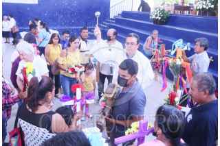 EMILIANO ZAPATA, MORELOS, 03MAYO2023.- Misa por el Dia de la Santa Cruz en la parroquia de la colonia Tres de Mayo. Decenas de católicos acudieron con sus cruces adornadas para que al final de la misa fueran bendecidas. Muchos hombres de oficio de albañil llevaron cruces que serán colocadas en la construcción donde laboran a fin de que tenga la protección divina. FOTO: MARGARITO PÉREZ RETANA / CUARTOCURO.COM