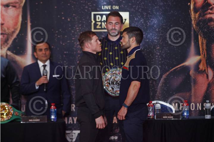 GUADALAJARA, JALISCO, 03MAYO2023.- Este medio día en las instalaciones de un reconocido hotel de la ciudad, se llevo la conferencia de prensa previa al combate entre el mexicano Saúl “Canelo” Álvarez ante el Ingles Jonh Ryder el próximo 6 de mayo en el Estadio Akron de Zapopan. FOTO: FERNANDO CARRANZA GARCIA / CUARTOSCURO.COM