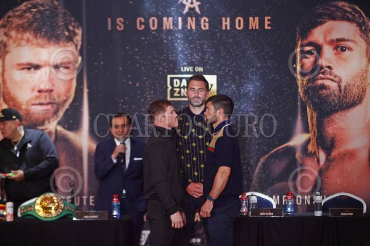 GUADALAJARA, JALISCO, 03MAYO2023.- Este medio día en las instalaciones de un reconocido hotel de la ciudad, se llevo la conferencia de prensa previa al combate entre el mexicano Saúl “Canelo” Álvarez ante el Ingles Jonh Ryder el próximo 6 de mayo en el Estadio Akron de Zapopan. FOTO: FERNANDO CARRANZA GARCIA / CUARTOSCURO.COM