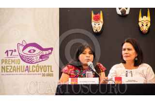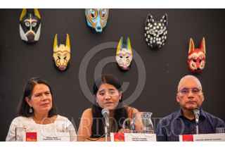 CIUDAD DE MÉXICO, 03MAYO2023.- En el Museo Nacional de Culturas Populares, se realizo el lanzamiento de la 17a edición del "Premio Nezahualpilli, de creación literaria de niñas niños y adolescentes". Alicia Gregorio Velasco, Alma Rosa Espíndola, Adriana Vargas, Filemón Beltrán y Jesús Antonio Rodríguez, en el presidium. FOTO: VICTORIA VALTIERRA/CUARTOSCURO.COM