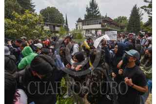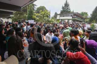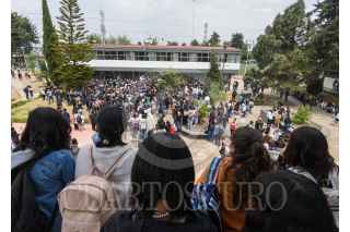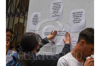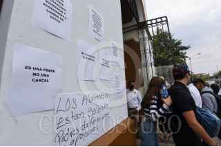 TOLUCA, ESTADO DE MÉXICO, 03MAYO2023.- Estudiantes de la Preparatoria núm. 2 Plantel Nezahualcóyotl de la UAEM se manifestaron este día en contra de la directora de este plantel denunciando acoso por parte de profesores, falta de mantenimiento en baños y otras áreas de la escuela, falta de material didáctico, mal servicio del Potrobus, prepotencia por parte del personal de seguridad, entre otros puntos. FOTO: CRISANTA ESPINOSA AGUILAR /CUARTOSCURO.COM
