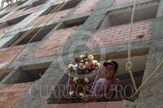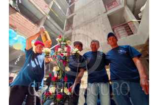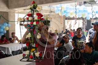 CIUDAD DE MÉXICO, 03MAYO2023.- Miles de trabajadores de la construcción celebraron en el país el Día de la Santa Cruz, en este festejo se celebra una misa en las obras para pedir que no haya accidentes fatales, además de agradecer por el trabajo. Tras el ritual religioso se agasaja a los maestros albañiles con barbacoa y un trago para que se relajen del trajín diario. FOTO: MOISÉS PABLO/CUARTOSCURO.COM