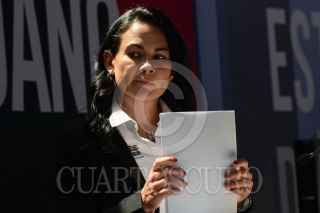 NAUCALPAN, ESTADO DE MÉXICO, 04MAYO2023.- Alejandra del Moral, candidata a la gubernatura del Estado de México por la coalición PRI, PAN y PRD “Va por el Estado de México” durante su participación en el foro “Diálogo Ciudadano: Gobernadora 2023” en las instalaciones de la Universidad Del Valle de México (UVM) campus Lomas Verdes. FOTO: MARIO JASSO/CUARTOSCURO.COM