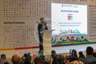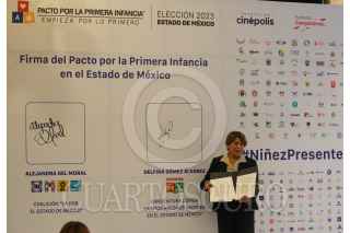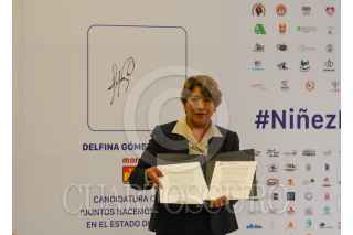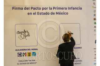 TOLUCA, ESTADO DE MÉXICO, 04MAYO2024.- Delfina Álvarez Gómez candidata a la gubernatura por el Estado de México por la alianza “Juntos Hacemos Historia” integrada por MORENA, PT y PVEM firmo el Pacto por la Primera Infancia, iniciativa ciudadana que busca priorizar los derechos de la niñez temprana, colectivo compuesto por 480 instituciones. FOTO: CRISANTA ESPINOSA AGUILAR /CUARTOSCURO.COM