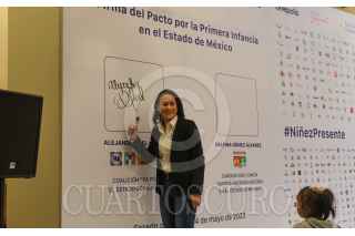 TOLUCA, ESTADO DE MÉXICO, 04MAYO2023.- Alejandra del Moral candidata a la gubernatura “Va por el Estado de México” integrada por PRI, PAN, PRD y NA, firmo el Pacto por la Primera Infancia, iniciativa ciudadana que busca priorizar los derechos de la niñez temprana, colectivo compuesto por 480 instituciones. FOTO: CRISANTA ESPINOSA AGUILAR /CUARTOSCURO.COM