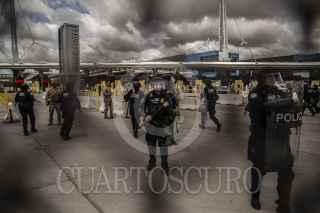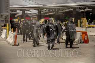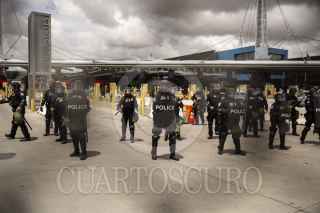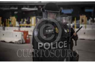 TIJUANA, BAJA CALIFORNIA, 05MAYO2023.-Un simulacro es llevado a cabo esta tarde en la garita de cruce de San Ysidro, coordinado por las agencias que trabajan en el puerto de Cruce CBP, USBP, ICE y DHIS, por sus siglas en inglés. A una semana de la revocación del Título 42 y a unos días de que el presidente de Estados Unidos, Joe Biden diera a conocer A través de un comunicado la militarización de la frontera. El evento fue llevado a cabo en las líneas 28 a la 34 con el objetivo de no afectar el tráfico en gran manera. FOTO: OMAR MARTÍNEZ /CUARTOSCURO.COM