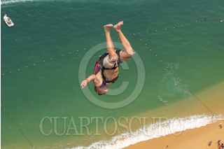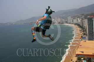 ACAPULCO, GUERRERO, 06MAYO2023.- Paracaidistas de diferentes partes del mundo, realizaron arriesgados saltos desde el condominio La Palapa a más de 100 metros de altura, dentro del Espectáculo de Salto Base Extremo en Acapulco. FOTO: CARLOS ALBERTO CARBAJAL/CUARTOSCURO.COM