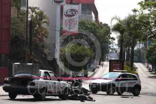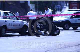 CUERNAVACA, MORELOS, 07MAYO2023.- Un hombre que manejaba una motoneta murió cuando se impactó contra el frente de un taxi en la avenida Plan de Ayala en Cuernavaca. Los hechos ocurrieron después de las diez de la mañana y fue tan grande el impacto que la motoneta quedo destrozada de la parte frontal y aunque llegaron los servicios de urgencias médicas nada pudieron hacer, pues el hombre ya había fallecido. FOTO: MARGARITO PÉREZ RETANA / CUARTOSCURO.COM