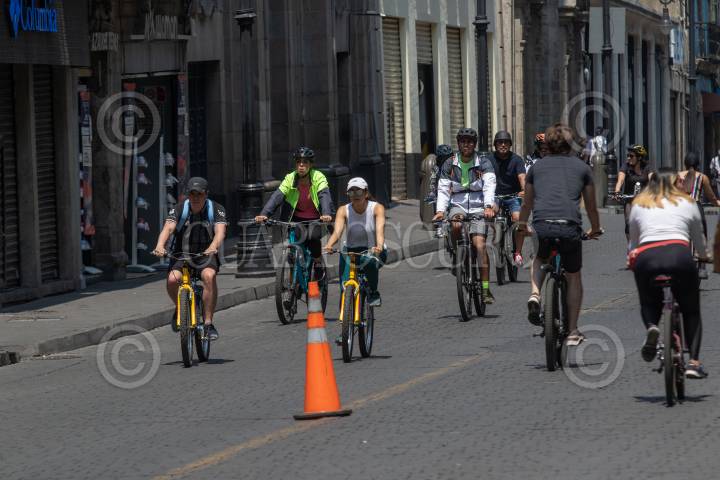 CIUDAD DE MÉXICO, 07MAYO2023.- Capitalinos aprovechan las calles cerradas en el Centro Histórico, para realizar ejercicio como andar en bicicleta, andar en patines o trotar esto a pesar de que el día de hoy se reporto un intenso calor. FOTO: MOISÉS PABLO/CUARTOSCURO.COM
