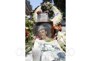 MÉXICO, D.F., 15ABRIL2007.- Flores, fotografías y veladoras, son algunas de las cosas que dejan los admiradores de Pedro Infante en su tumba, durante la conmemoración de su 50 aniversario luctuoso. FOTO: ISAAC ESQUIVEL/CUARTOSCURO.COM