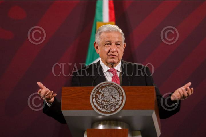 CIUDAD DE MÉXICO, 08MAYO2023.- Andrés Manuel López Obrador, Presidente de México, encabezó su mañanera en la cual hablo sobre los avances del Tren Maya y mango el pésame por el deceso de Conchita Nava. FOTO: MOISÉS PABLO/CUARTOSCURO.CON