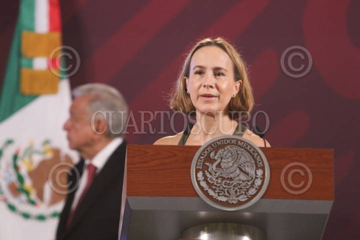 CIUDAD DE MÉXICO, 08MAYO2023.- Andrés Manuel López Obrador, Presidente de México, encabezó su mañanera en la cual hablo sobre los avances del Tren Maya y mango el pésame por el deceso de Conchita Nava. FOTO: MOISÉS PABLO/CUARTOSCURO.CON