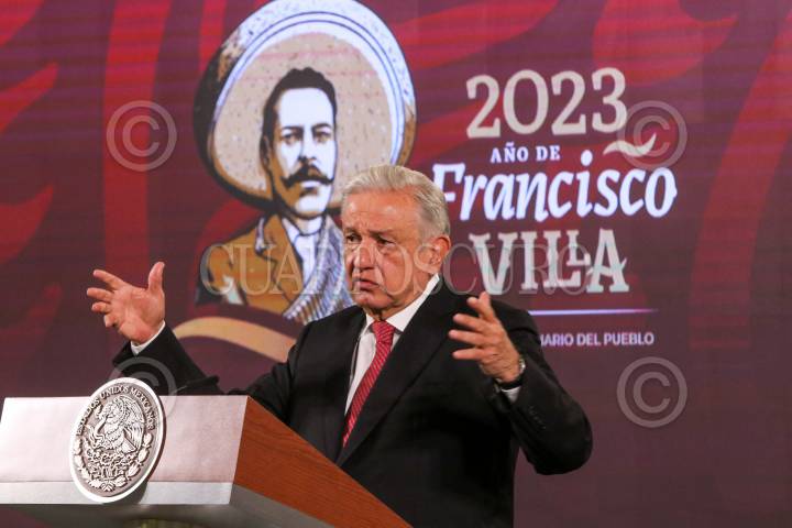 CIUDAD DE MÉXICO, 08MAYO2023.- Andrés Manuel López Obrador, Presidente de México, encabezó su mañanera en la cual hablo sobre los avances del Tren Maya y mango el pésame por el deceso de Conchita Nava. FOTO: MOISÉS PABLO/CUARTOSCURO.CON