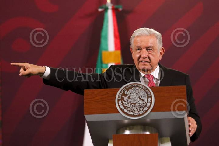 CIUDAD DE MÉXICO, 08MAYO2023.- Andrés Manuel López Obrador, Presidente de México, encabezó su mañanera en la cual hablo sobre los avances del Tren Maya y mango el pésame por el deceso de Conchita Nava. FOTO: MOISÉS PABLO/CUARTOSCURO.CON