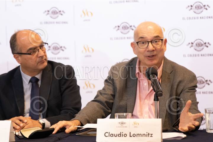 CIUDAD DE MÉXICO, 08MAYO2023.- Christopher Domínguez Michael, Leonardo López Luján, Claudio Lomnitz, Luis Fernando Lara, Gabriela Ortiz, Antonio Lazcano Araujo, y Javier García-Diego, dieron a conocer las actividades que se realizarán la próxima semana por el 80 Aniversario del Colegio de México. FOTO: MOISÉS PABLO/CUARTOSCURO.COM