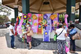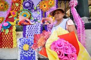 CHILPANCINGO, GUERRERO, 09MAYO2023.- Como cada año, desde hace 30 años, la señora Silvia Román elabora cortinas de papel picado para venderlas en el zócalo de la capital del estado de Guerrero en el día de las Madres. Ella es la tercera generación en su familia que se dedica a la elaboración de piñatas y cortinas, sus hijas se convertirán en la cuarta generación en este oficio. La señora Silvia Román, es originaria de Iguala de la Independencia, pero radicada en Chilpancingo desde hace más de 30 años y se dedica a hacer cortinas de papel. Relato que fueron sus abuelos los que empezaron con la elaboración de piñatas hace más de 50 años en la ciudad tamarindera, quienes les enseñaron este arte a sus hijos, entre ellos sus padres y de ahí le toco a ella, a sus hermanos y sus primos continuar con esta labor, que se ha venido heredando de generación en generación. Recordó que fue hace poco más de 40 años que llego, muy joven, a la ciudad de Chilpancingo, donde se caso y tuvo a sus hijos, además de que continuo con su trabajo de elaboración de piñatas y que hasta la fecha lo sigue haciendo. Señala que fue en un curso donde aprendió también a hacer las cortinas de papel crepé y ahí vio una nueva fuente de ingresos para ella y su familia. FOTO: DASSAEV TÉLLEZ ADAME/CUARTOSCURO.COM
