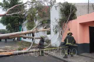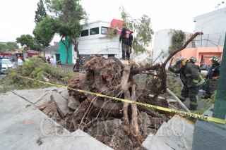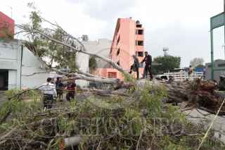 CIUDAD DE MÉXICO, 09MAYO2023.- Un gran árbol cayó sobre una empresa, en la calle de Saturno y Eje de Guerrero, en la colonia Guerrero, alcaldía Cuauhtémoc. Bomberos tuvieron que utilizar motosierras para cortar al ejemplar. FOTO: ROGELIO MORALES/CUARTOSCURO.COM