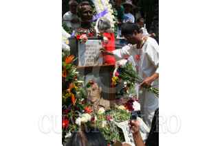 MÉXICO, D.F., 15ABRIL2007.- Descenas de personas visitaron la tumba del ídolo Pedro Infante, para recordarlo en su 50 aniversario luctuoso. FOTO: ISAAC ESQUIVEL/CUARTOSCURO.COM