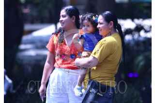 CUERNAVACA, MORELOS, 10MAYO2023.- Escena cotidiana en la plaza de Armas de Cuernavaca, una mujer se encuentra con su hija y su nieta en el Dia de las Madres. FOTO: MARGARITO PÉREZ RETANA / CUARTOSCURO.COM