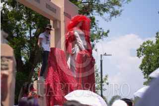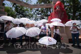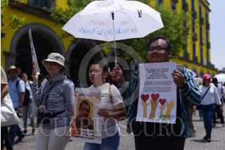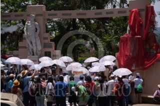 XALAPA, VERACRUZ, 10MAYO2023.- Madres de personas desaparecidas se movilizaron Día de las Madres por las calles Xalapa y en su recorrido pasaron por el Hemiciclo de las Cuatro Virtudes Cardinales para cubrir con un manto y una red de color rojo la estatua de la justicia. Posteriormente se dirigieron a la plaza Sebastián Lerdo de Tejada. FOTO: YERANIA ROLÓN/CUARTOSCURO.COM