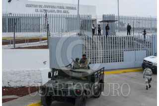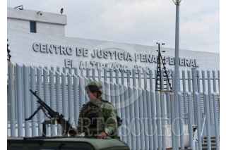 ALMOLOYA DE JUÁREZ, 10MAYO2023.- Elementos del Ejercito Mexicano y la Guardia Nacional resguardada las inmediaciones del Centro de Justicia Penal Federal El Altiplano Estado de México, mientras se realizaba una audiencia de Héctor Luis “El Güero” Palma. FOTO: CRISANTA ESPINOSA AGUILAR /CUARTOSCURO.COM