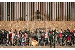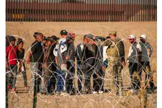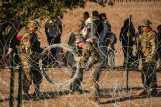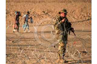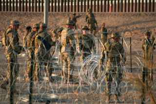 CIUDAD JUÁREZ, CHIHUAHUA, 11MAYO2023.- Elementos del ejército de EUA refuerzan con alambre con púas donde migrantes de diversas nacionalidades esperan para que autoridades de ese país resuelvan su situación migratoria. FOTO: JUAN ORTEGA/ CUARTOSCURO.COM