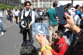 CIUDAD DE MÉXICO, 11MAYO2023. Fanáticos se dieron cita en el zócalo capitalino ya que de acuerdo con una publicación de la red social Snapchat, Daft Punk organizó tres experiencias de realidad aumentada que se podrán realizar por el décimo aniversario del álbum Random Access Memories (2013). FOTO: EDGAR NEGRETE/CUARTOSCURO.COM