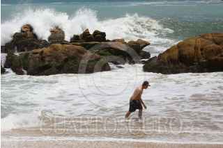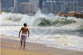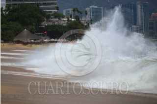 ACAPULCO, GUERRERO, 11MAYO2023.- El fenómeno de mar se ha causado algunas afectaciones a prestadores de servicios turísticos con la perdida de su mobiliario de playa, autoridades a pedido a turistas evitar meterse a nadar al mar para evitar un accidente, el fenómeno afecta a la costa del Pacífico de México, provocando olas de hasta 4 y 5 metros. FOTO: CARLOS ALBERTO CARBAJAL/CUARTOSCURO.COM