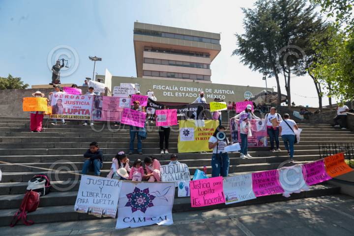 TOLUCA, ESTADO DE MÉXICO, 11MAYO2023.- En el marco del Día Nacional de la Lucha en Contra de la Violencia Vicaria familiares y amigos de María Guadalupe González Martínez quien lleva 107 en prisión preventiva acusada por abuso sexual en contra de la actual pareja del padre de sus hijos, se manifestaron en la Fiscalía General de Justicia del Estado de México exigiendo justicia. FOTO: CRISANTA ESPINOSA AGUILAR /CUARTOSCURO.COM